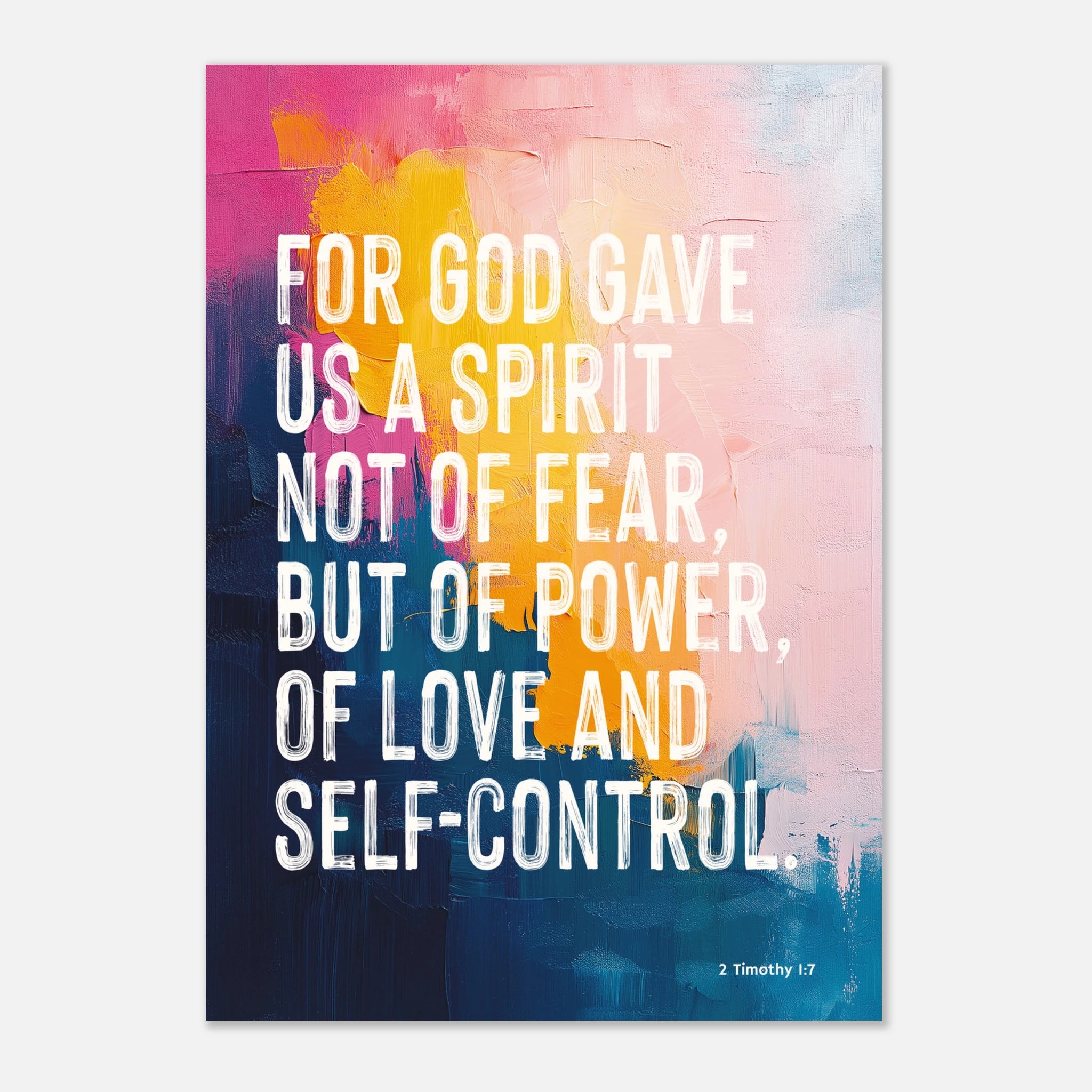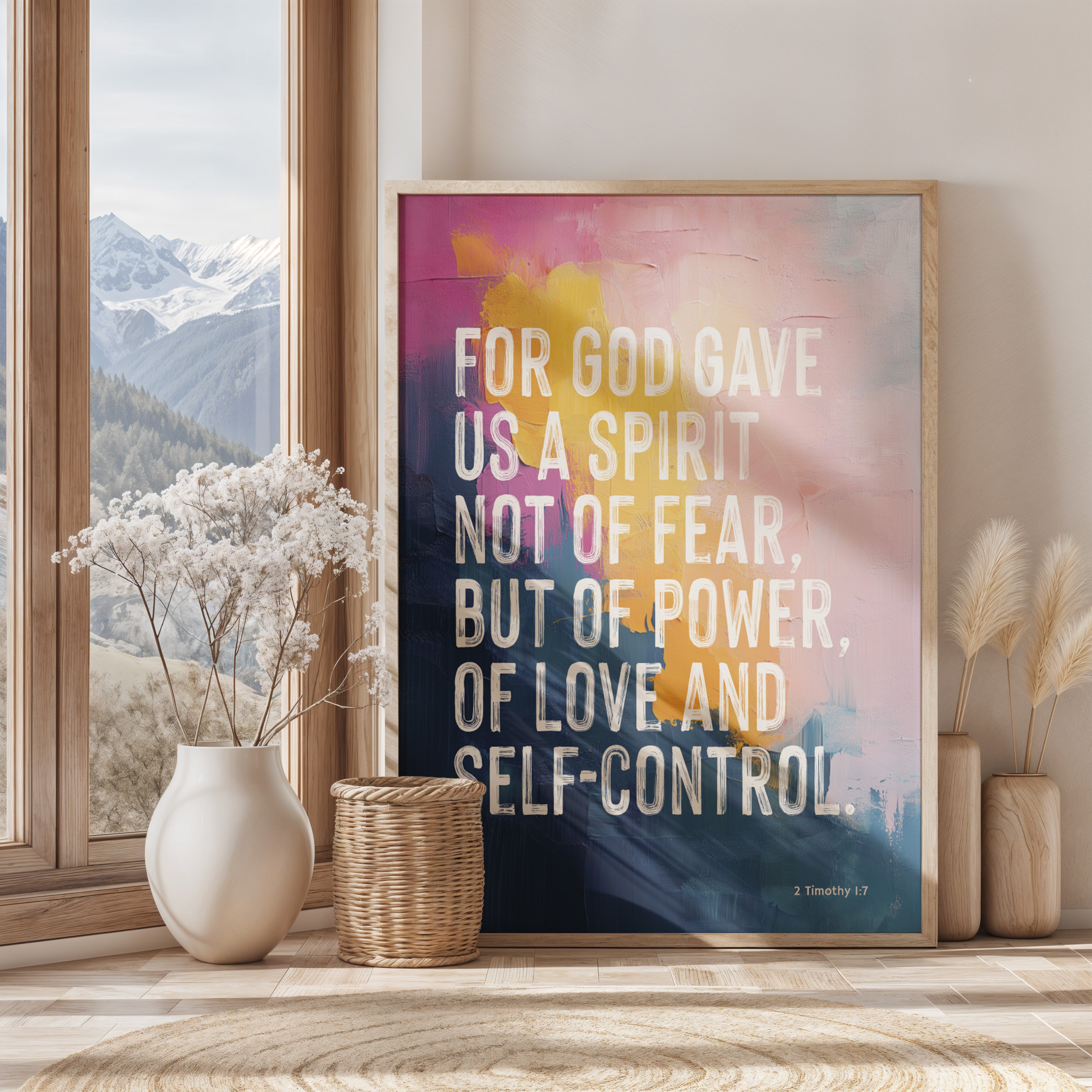 Speak courage into your space with this empowering Bible art print inspired by 2 Timothy 1:7 – "For God gave us a spirit not of fear, but of power, of love, and self-control."