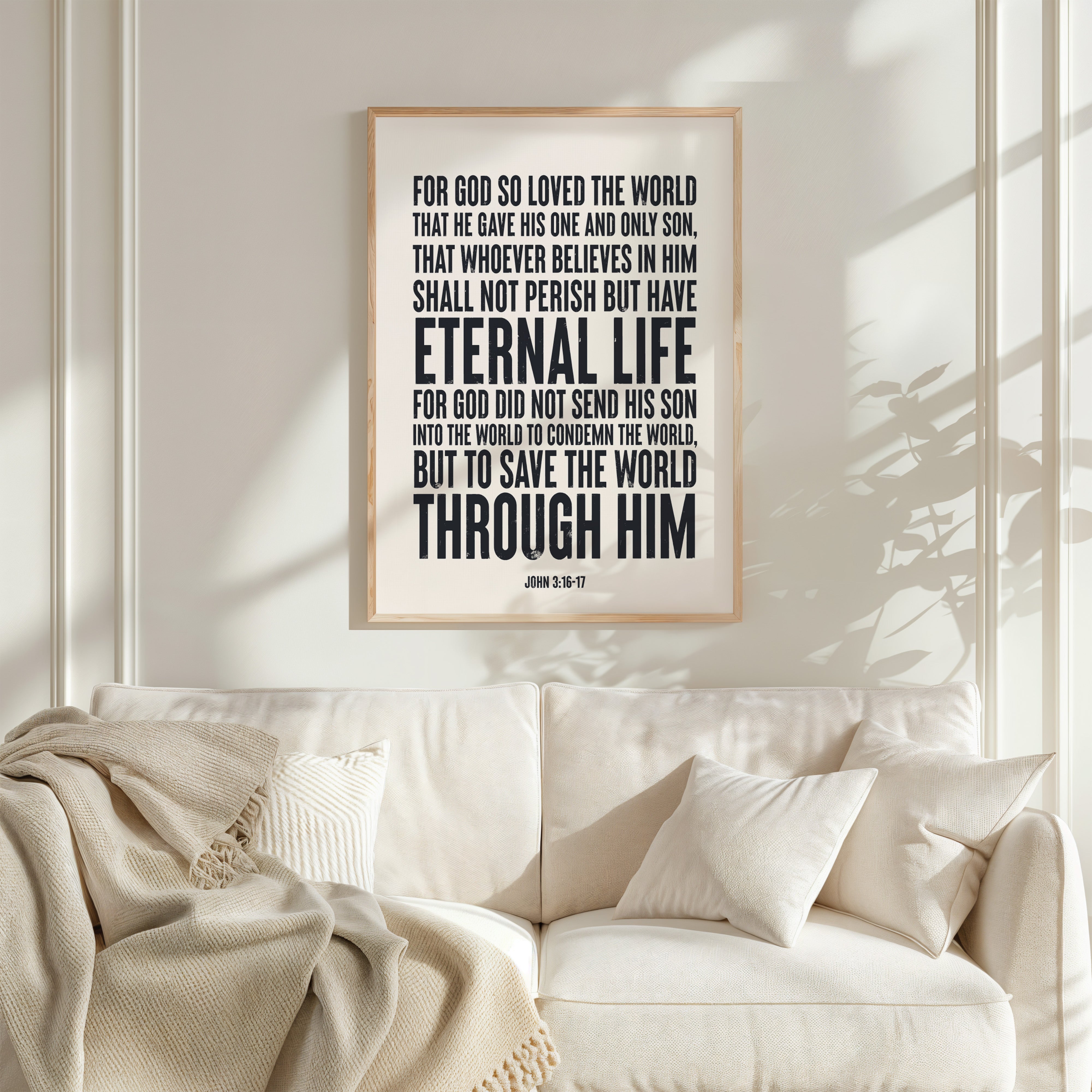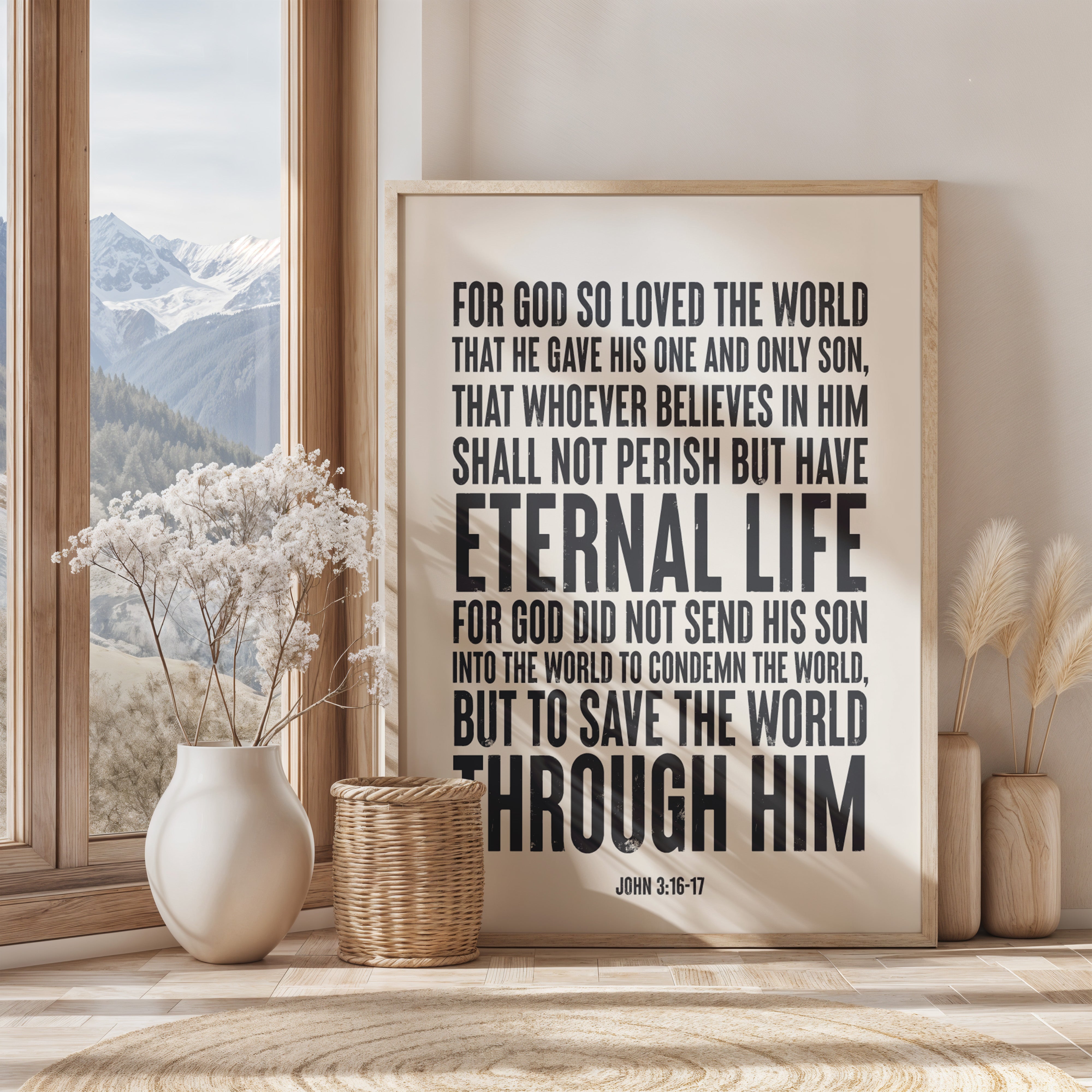 Timeless and powerful, this art print features the beloved verse “For God so loved the world…” from John 3:16-17. A beautiful reminder of God’s love and the promise of eternal life,