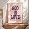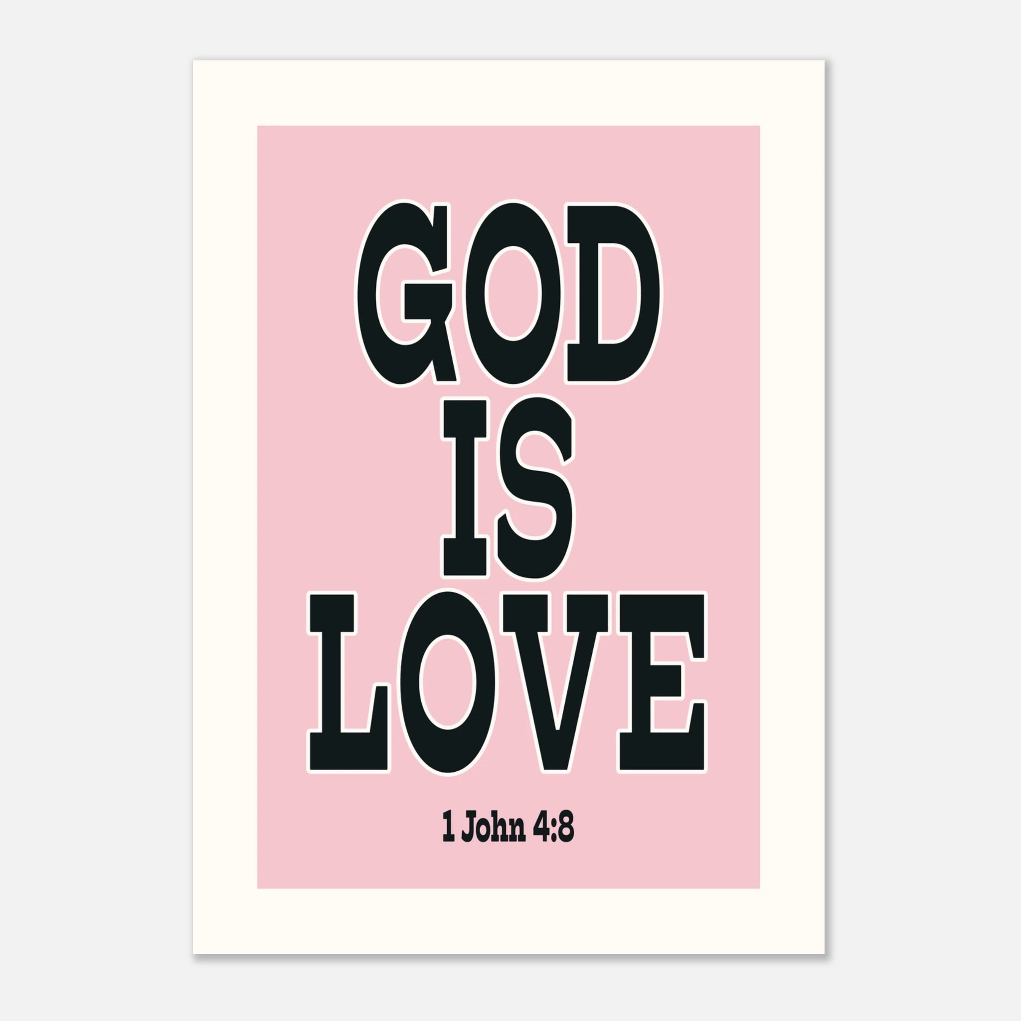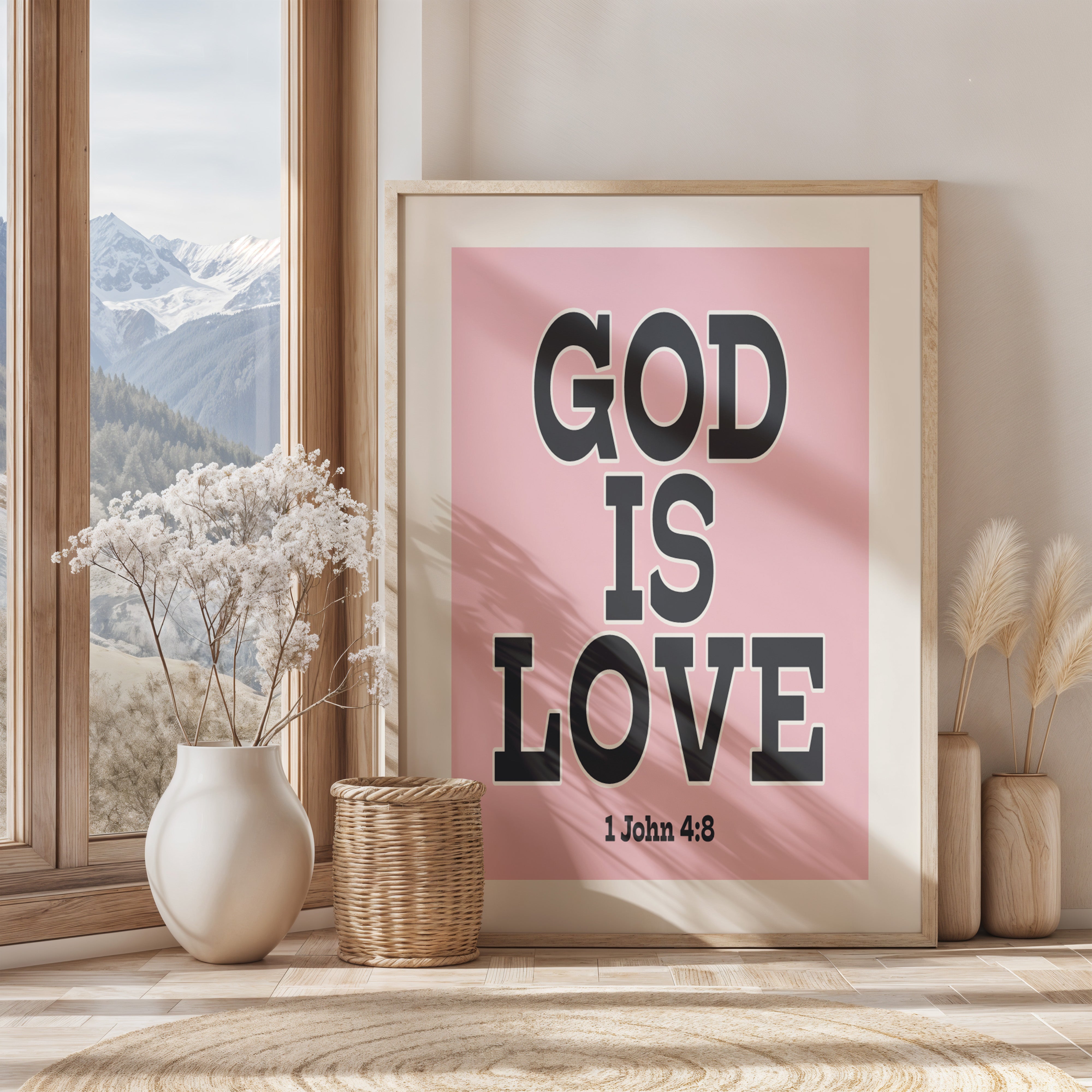 Declare the essence of the Gospel with this beautifully bold Bible art print featuring 1 John 4:8 – "God is love."