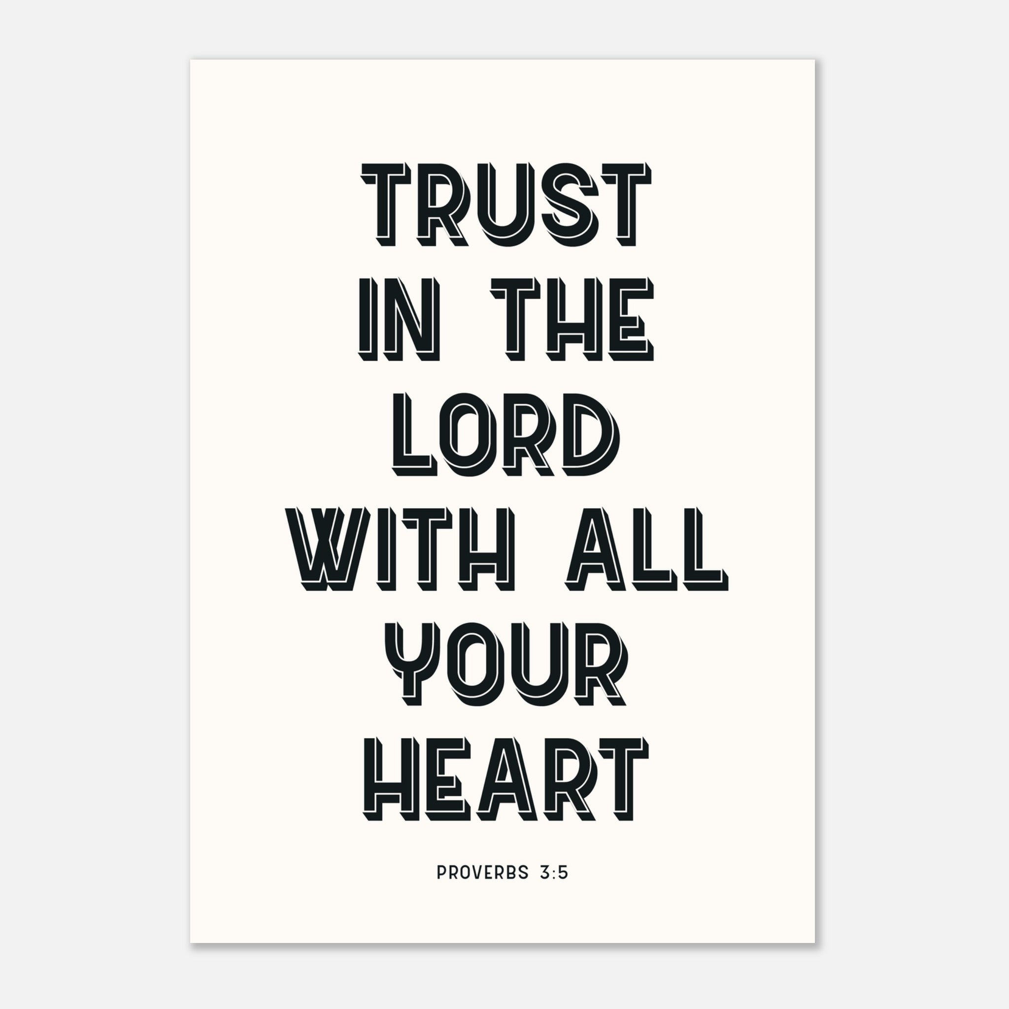 Bring peace and purpose to your space with this inspiring art print featuring “Trust in the Lord with all your heart” from Proverbs 3:5. A beautiful reminder to lean on faith daily—perfect for any room that needs a touch of encouragement.