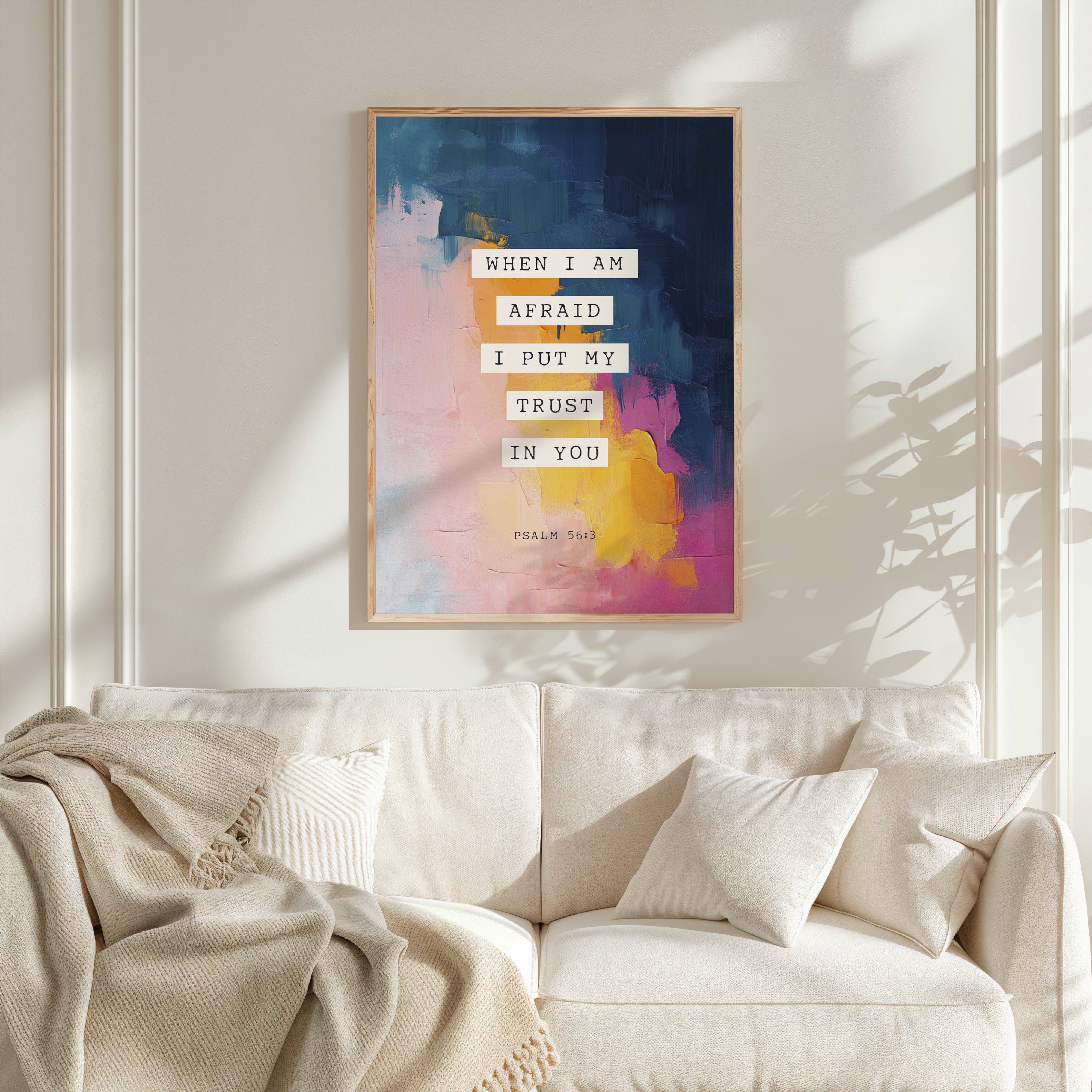 Let faith take the lead with this comforting Bible art print inspired by Psalm 56:3"When I am afraid, I put my trust in You."